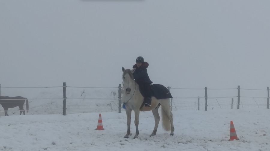 Aujourd'hui petite séance avec poney ! Bon on est toujours coincés par les sols gelés (il faisait -3 et clairement on dépasse pas le 0 en ce moment ..)