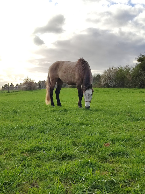 On a pu faire pas/trot/arret en cercle. J'ai tester les changements de main, pas très fluide mais ca passe. Pour terminer je l'ai prise en étant derrière, un peu plus perturbé mais nickel.