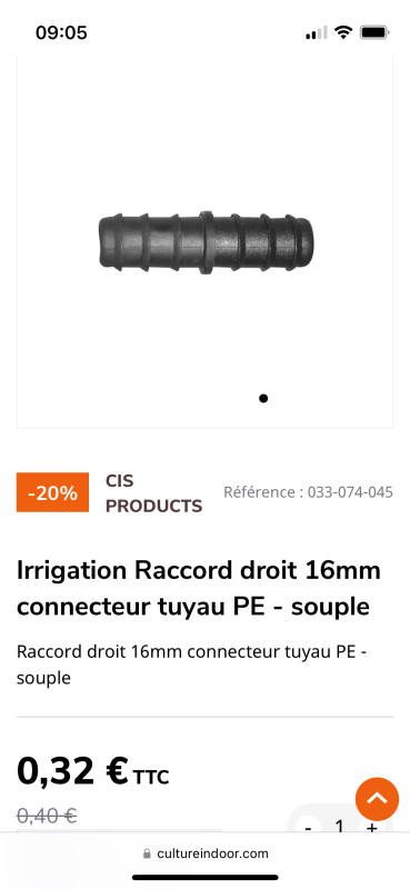 Pour faire une jonction solide et sans aspérité j’ai utilisé un raccord de ce type, qui s’enfile à l’intérieur (il faut forcer un peu et/ou ramollir l’extrémité du tuyau noir dans de l’´eau très chaude)