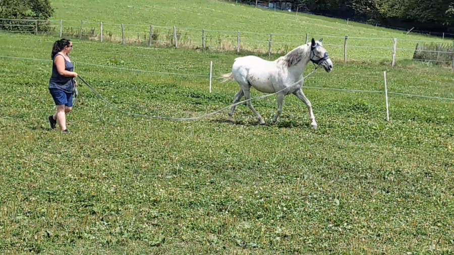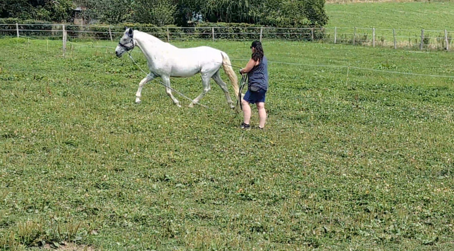 Ensuite travail au pas sur le cercle avec changements de main et arrêts sur le cercle, nickel !