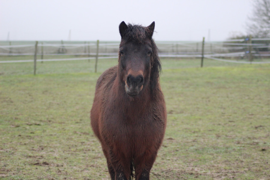 Le même jour, on peut voir le "reste du pré" derrière mon poney et vous voyez, c'est humide mais pas dégueu