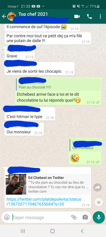 Charline a dit plusieurs fois qu'il ne fallait pas mettre trop d'huitre, les garçons ne l'ont pas écouté et c'est la première chose que les chefs ont dit à la dégustation "trop d'huitre, pas le goût de pomme de terre". Ce n'était clairement pas à elle d'aller en dernière chance, et Mathias a eu du bol de sauver sa peau sur la 2e épreuve sinon c'était sûr que c'est lui qui y allait.