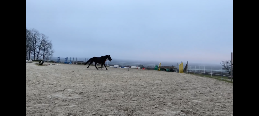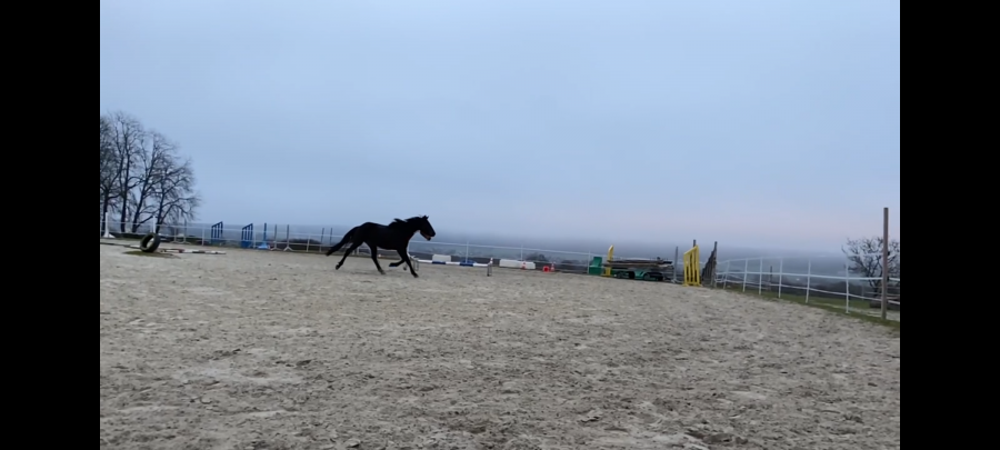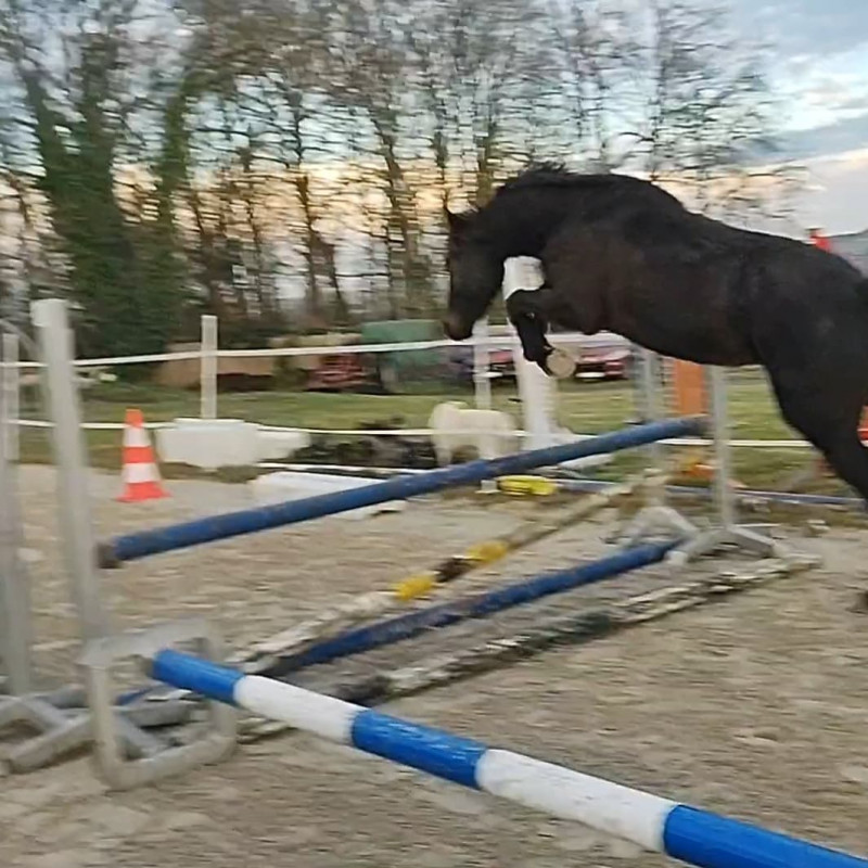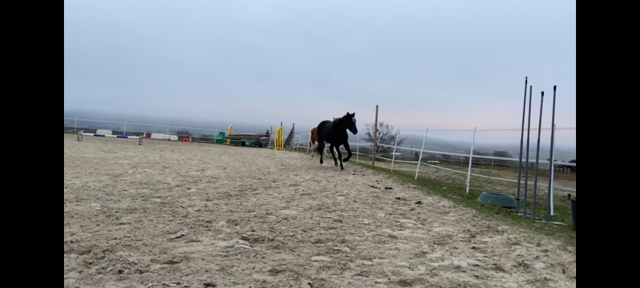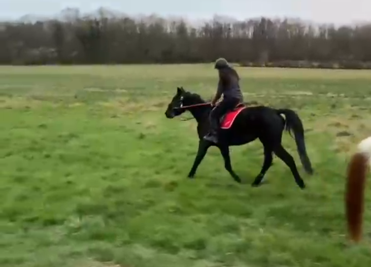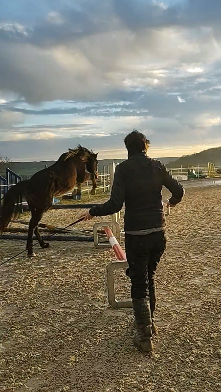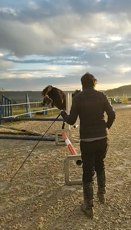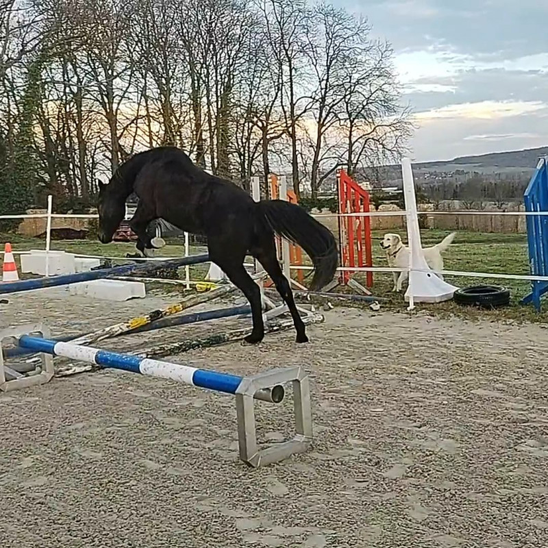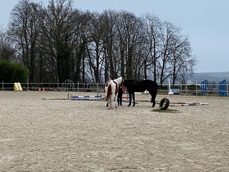 Vers la fin de la balade on tombe sur deux copains à pieds avec leurs loulous, on les suis et ils finissent à 4 en liberté dans la carrière, à jouer ! Idem encore au taquet, trot et galop à la demande, c'est top de le voir si bien !