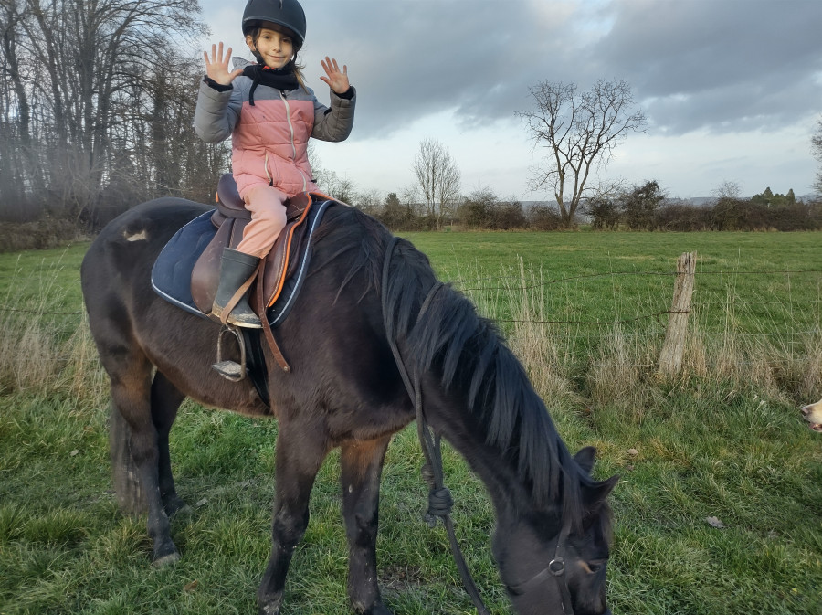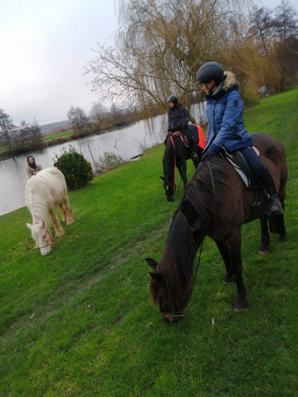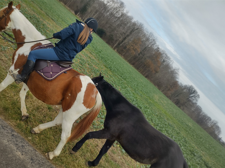 On fait demi tour et on recommence, je demande le galop, il accélère et hop, galop à côté du copain, les deux qui font la course, on s'est tous les 4 éclatés !