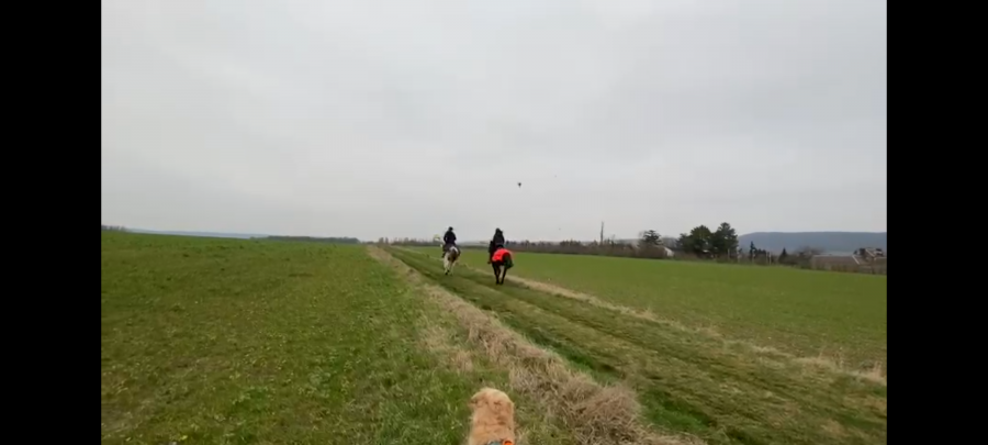 Sur une autre belle ligne, ma copine pousse un peu le trot et fini par galoper, je sens Idem prêt, mais moi j'hésite, il reste donc au trot allongé (mais pas au trot de taré).