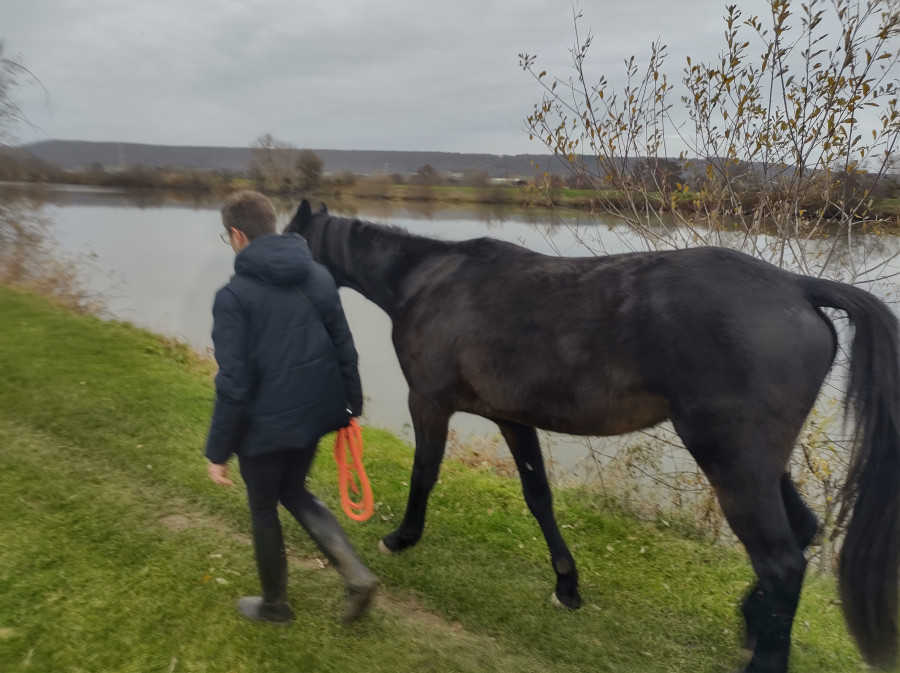 La balade se passe nickel, petit écart devant un mur (très moche) là où il m'a fait un demi tour la semaine dernière, il s'écarte juste un peu et le surveille le temps qu'on passe puis plus rien !