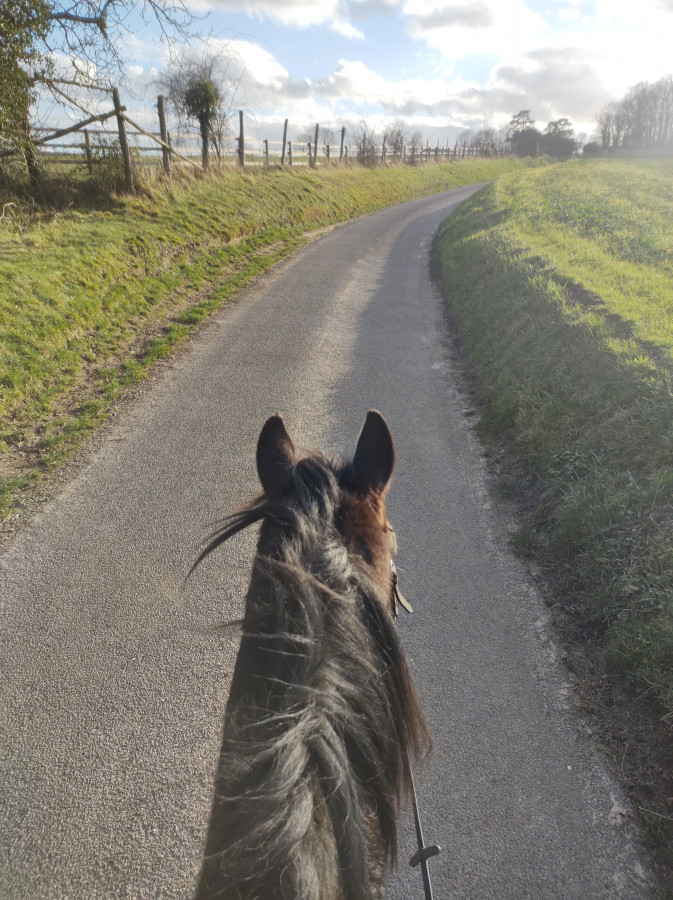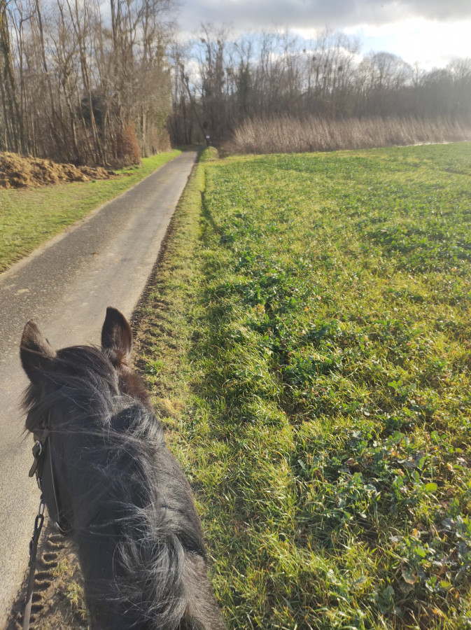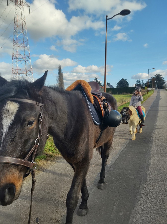Apparté : La petite était en selle à 14h30 car elle avait cours ... Elle voit l'autre jeune arriver à 14h30 et qui lui dit "Ben non, la prof m'a appelé, elle a décalé le cours à 16h" J'étais dèg pour la petite donc j'ai modifié mes plans ....