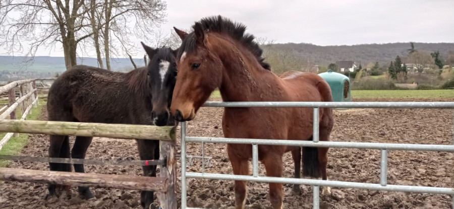 Puis gros pansage avec Chéri, plein de papouilles et zou ! Au paddock avec le nouveau qui est en intégration ! Tout se passe bien, Idem s'en fiche et le laisse aller au foin, ils passeront la nuit ensemble et sans soucis !