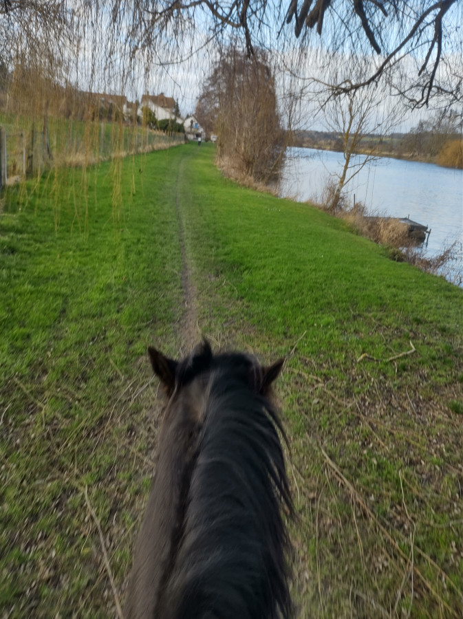 Je pars à pieds, marche une vingtaine de minutes et monte une fois en bords de Seine. Idem super sage, je ne vais avoir tenu les rênes que par la boucle