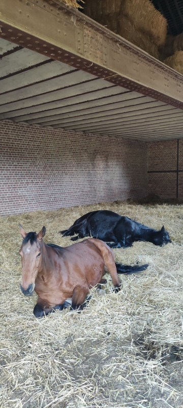 Sa pension boxe paddock, par contre c'est seul, pas de copains, mini paddock, pas d'herbe. C'est bien pour dépanner les mois d'hiver, mais certainement pas à l'année (inconcevable pour moi !).