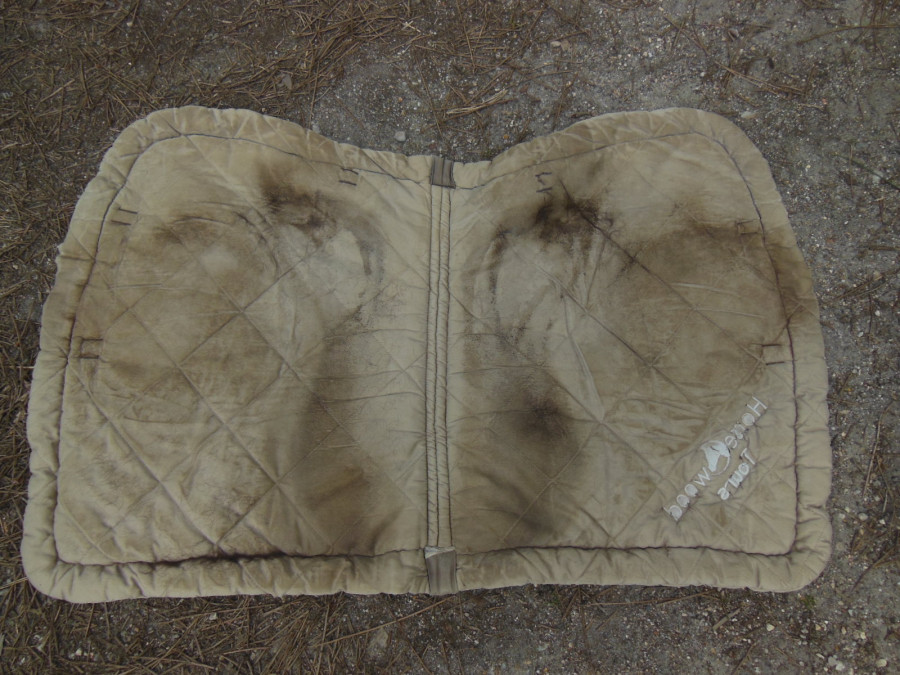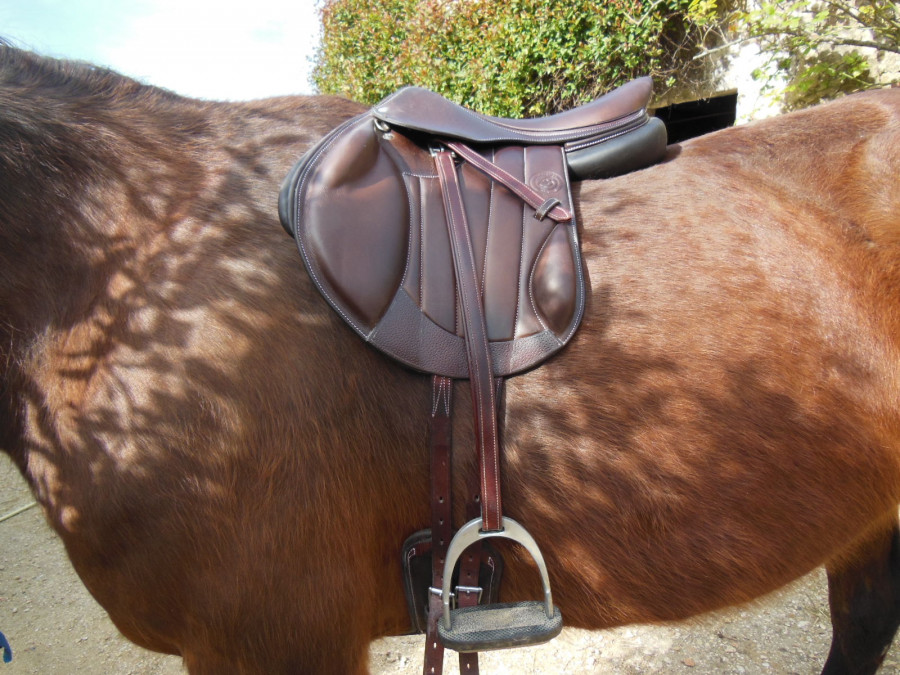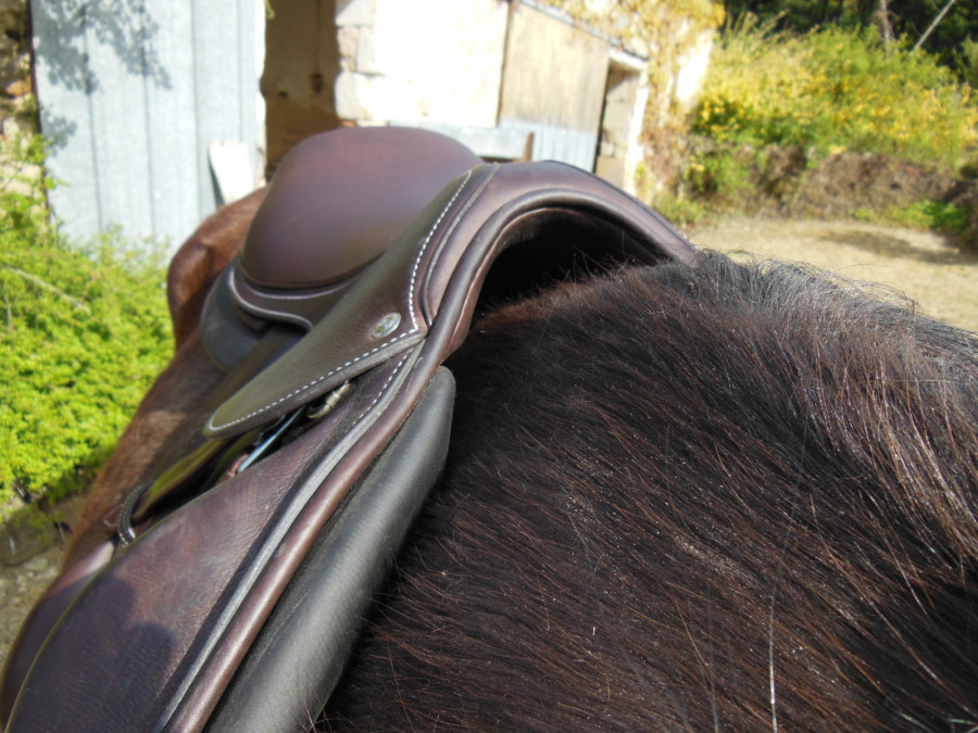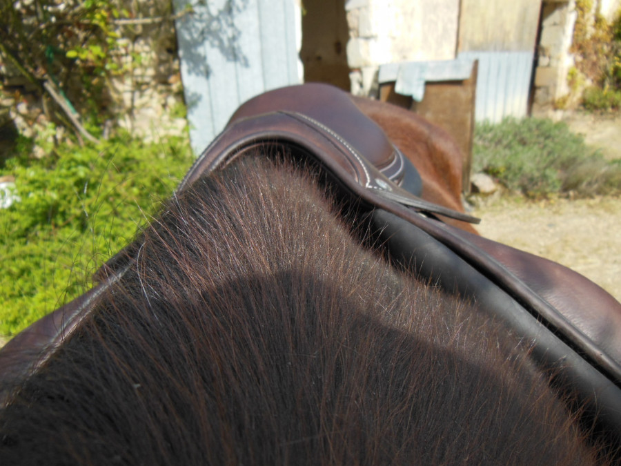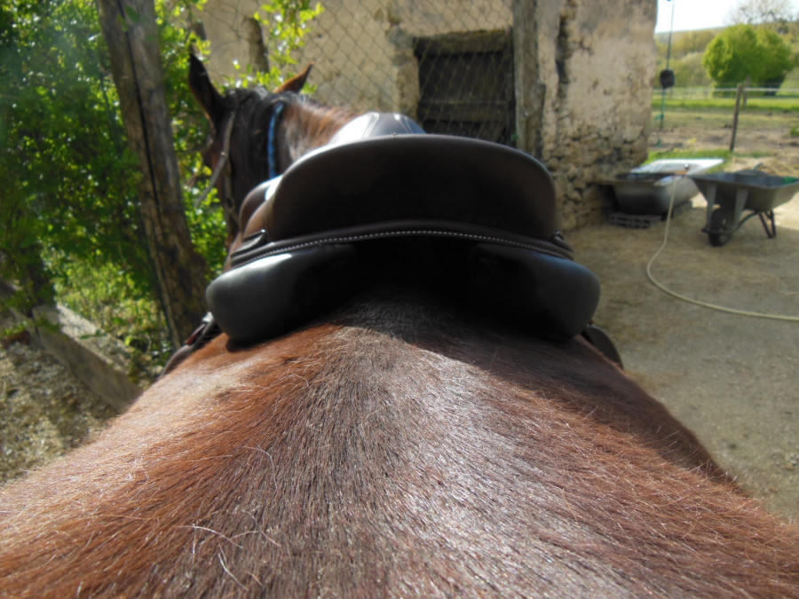 Nouvelle selle neuve, sur mesure, depuis fin février. 4 balades depuis. Je me sens bien, le cheval aussi, mais je tique sur l'appui de la selle sur le dos du cheval depuis le début, et là, ça se confirme.