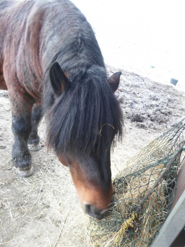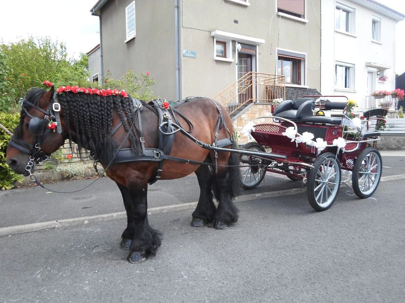c'est un entier ardennais donc l'encolure comme un tronc d'arbre... le chignon ultra-large et des crins ultra-épais et abondants, je peux même pas les tenir dans mes mains .