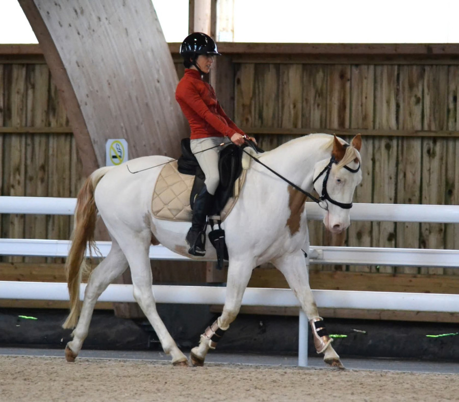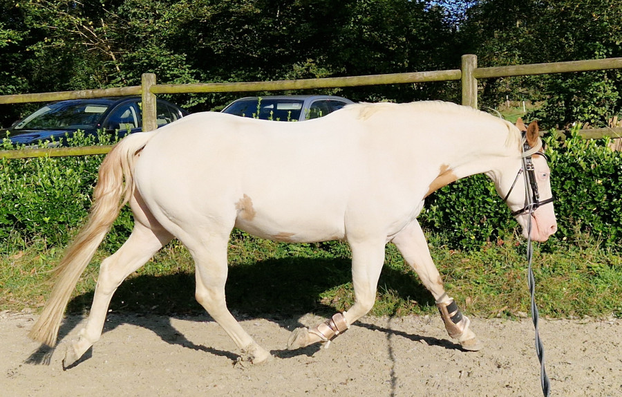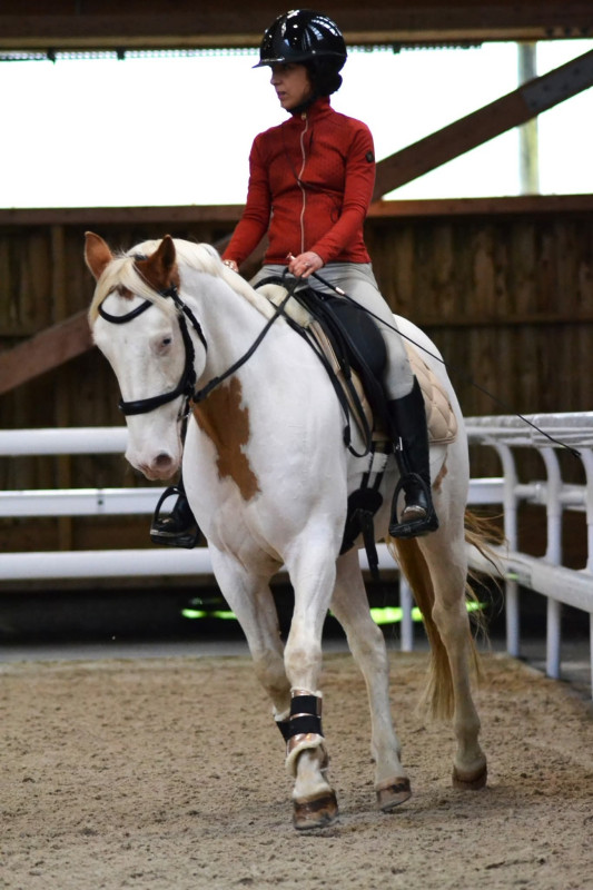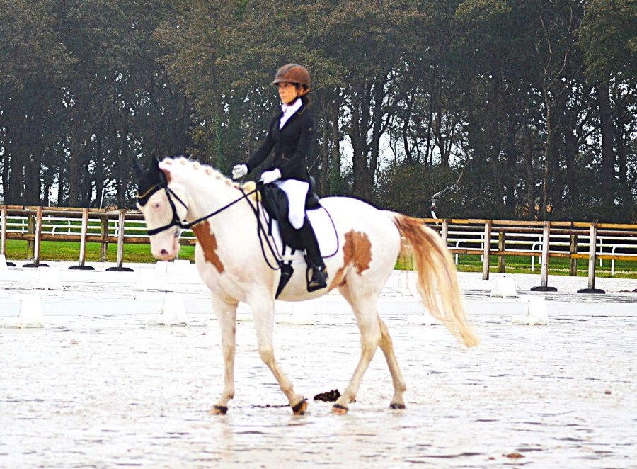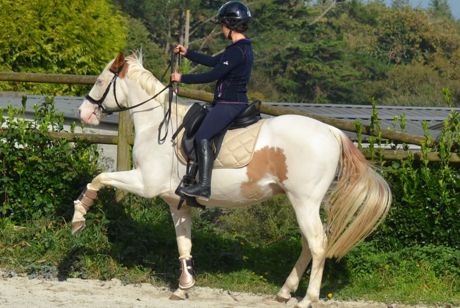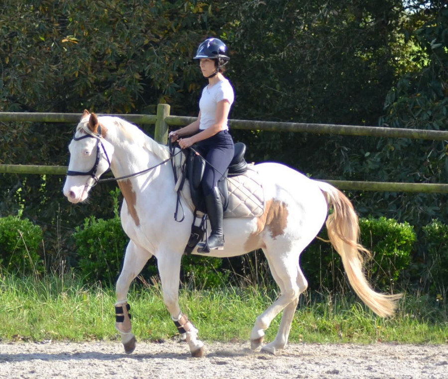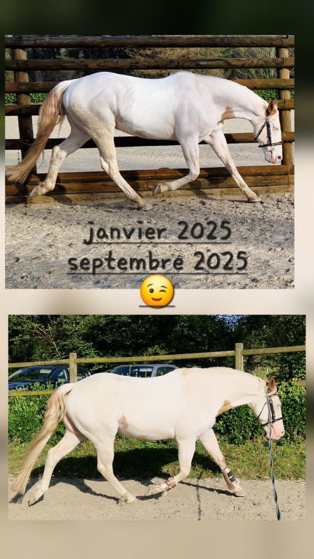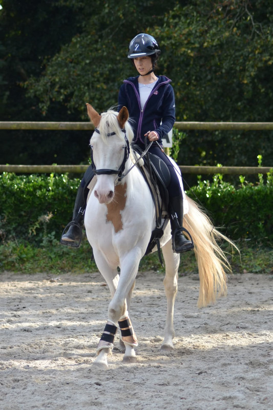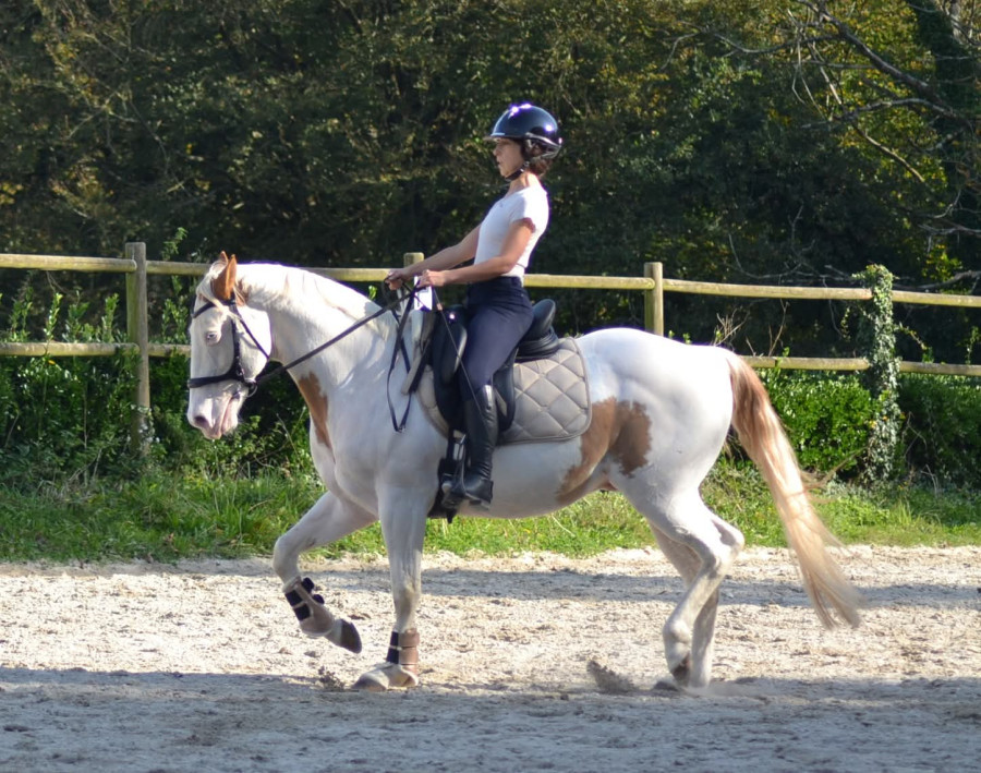 Il est super volontaire et vraiment agréable à monter. On travaille beaucoup les figures de deux pistes et il s'est bien allégé et commence à se porter de lui même. L'impulsion n'est plus du tout la même !