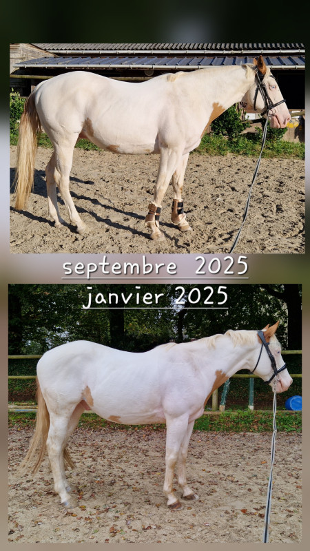 Pour résumer, voici un petit avant/après du travail de ces derniers mois. Un cheval qui s'est bien redressé et a gagné en popotin et en ligne du dessus