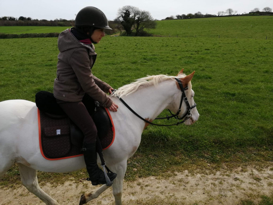Petit parcours au galop sans hauteur. Un poney confiant, tranquille(qu'il faut même activer hein ) facile à diriger, franc même sur soubassements....franchement, waouh.