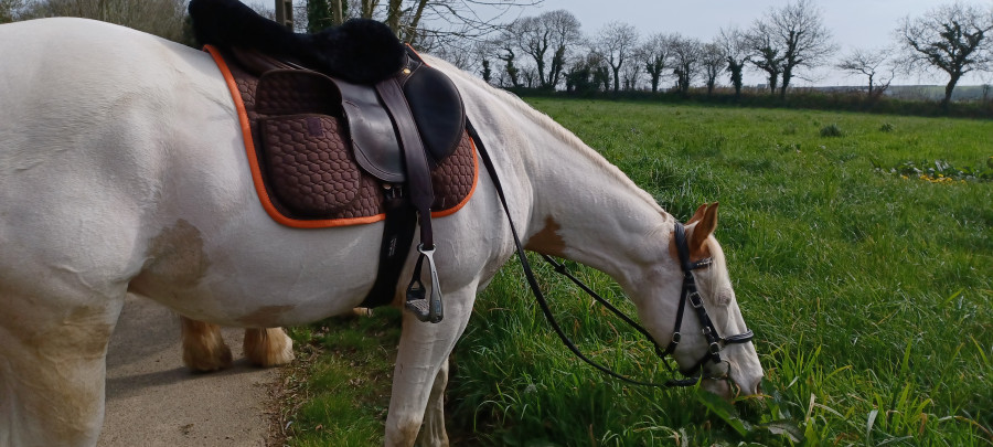 Bah je suis restée silencieuse, car problème de selle. Du coup suis plus ou moins à pieds. Là je me fais des essais avec un amortisseur en feutre spécial garrot long.