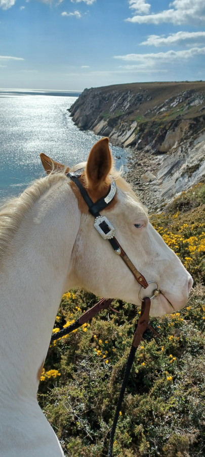 Alors certes c'est un jeune cheval qui apprend mais avec une sérénité et une complicité qui m'impressionne. On est hyper connectés tous les 2. Je n'ai jamais eu un cheval avec un tel mental