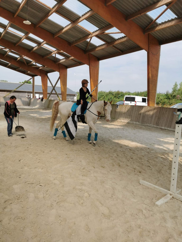 Reste à améliorer le cardio....on était vraiment limite, foxy stressé, 1e fois/ jeune cheval....mais il apprendra Que du plaisir en tout cas!