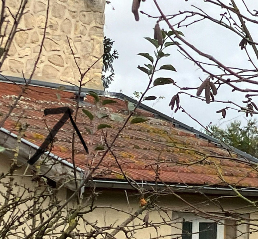 Cet après midi je suis passé revoir l'extérieur de la maison par curiosité car pas moyen de me souvenir de la présence d'une VMC ou pas, mais ça me semblait étrange, et voila ce que j'ai vu sur le toit de la salle de bain :