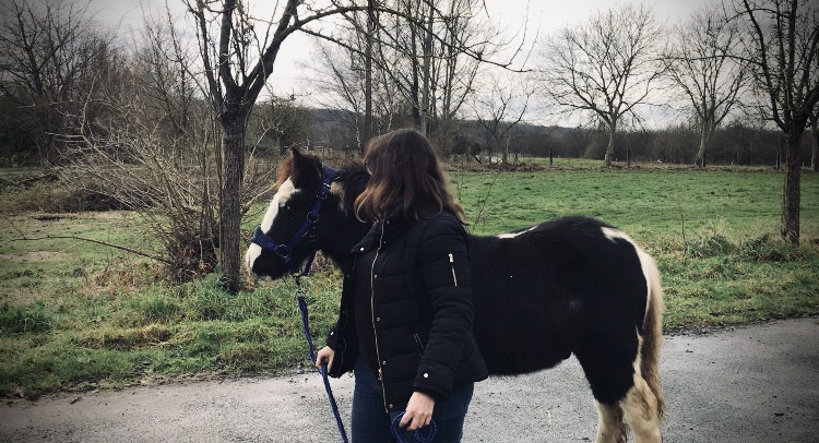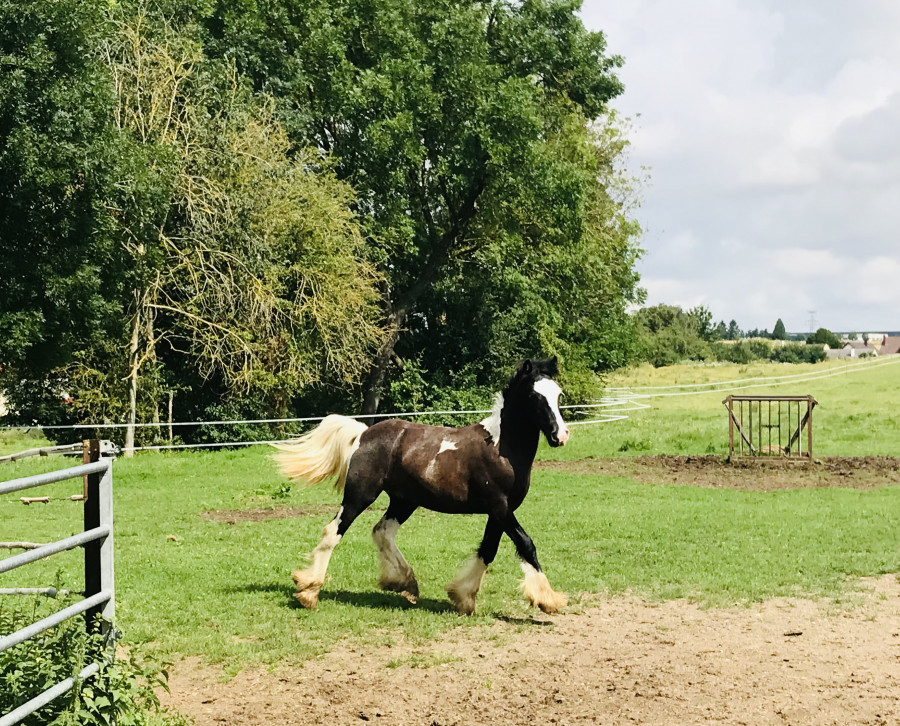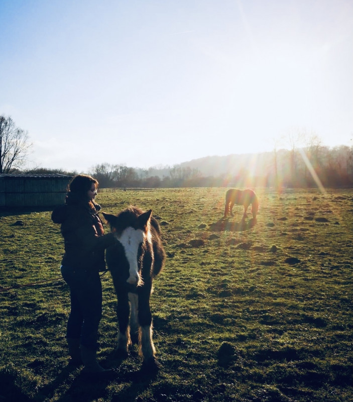 J'ai passé des semaines assez compliquées, Azzaro ne connaissait vraiment pas grand chose : il suivait en longe, mais ne marchait pas réellement en longe (au moindre contact avec la longe, il faisait un bond en arrière). Il ne se poussait pas, me rentrait tout le temps dedans assez violemment, quand je demandais les sabots il les jetait puisqu'il ne les donnait etc... J'ai donc passé énormément de temps avec lui pour rendre mes visites un minimum sécurisées...