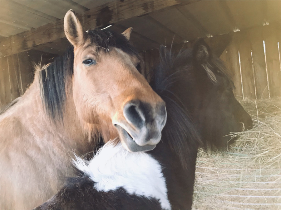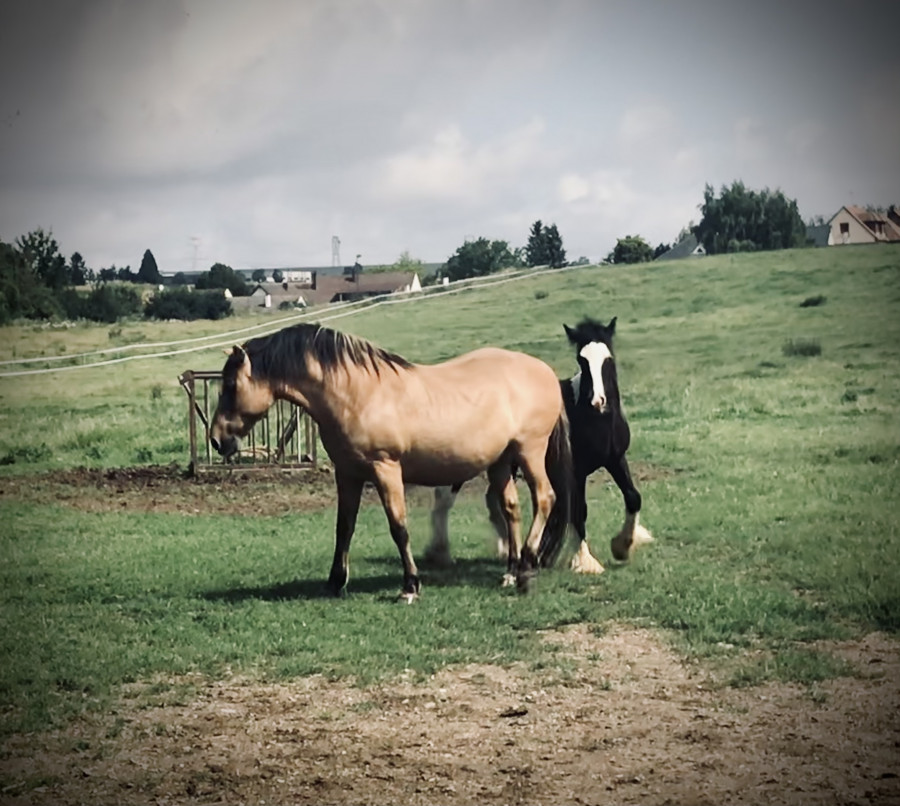 A tel point qu'Azzaro pouvait manger dans son seau, être avec moi, ça ne lui posait aucun soucis, par contre il chassait l'autre ponette qui n'avait pas le droit de nous approcher...