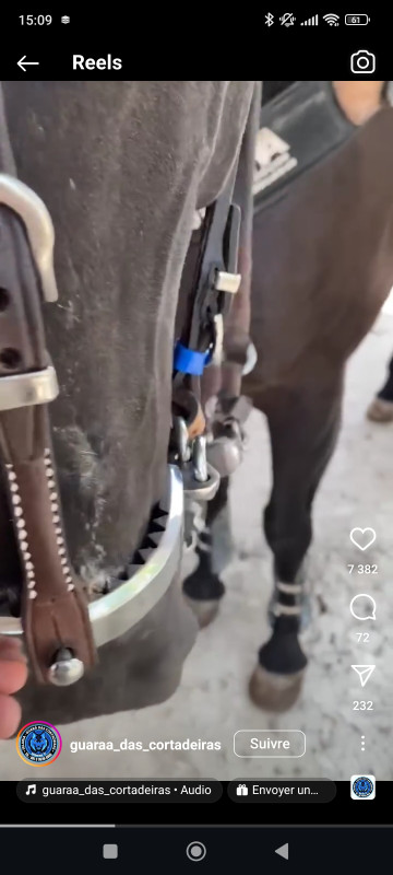 A mon avis quand tu es client de ce genre d'outil et que tu ne fais pas violemment demi tour à la vue de la première photo, les blessures dues à son utilisation sont loin de pouvoir te faire reculer... sérieux des piques dans le chanfrein si tu cherche ca tu cherche clairement la souffrance du cheval