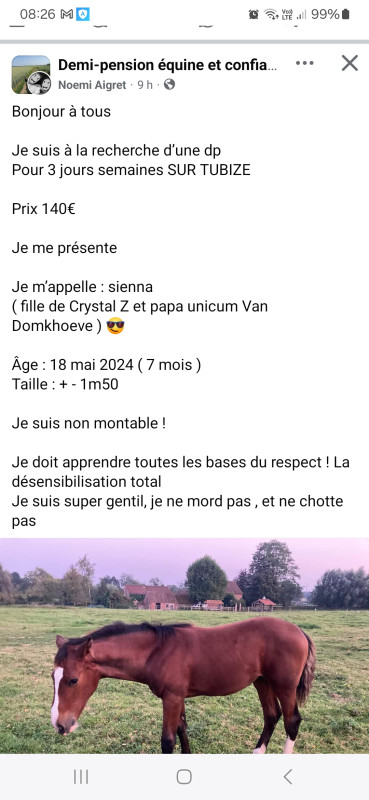 Qui veut un poulain de 7 mois en dp à 140?/ mois ?