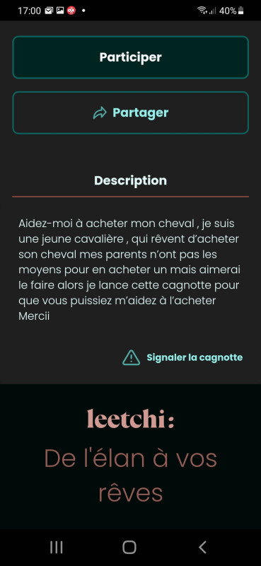 Non il n'y avait rien mais quelqu'un à signalé la cagnotte....mais j'ai vue qu'elle avait diffusé sur pleins de groupes différents.