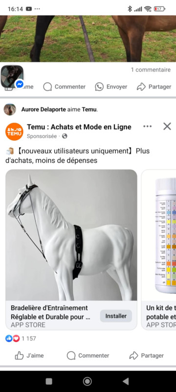 Les annonces générées par IA avec du matos équestre, c'est toujours hilarant. J'avais vu passer une annonce, le mors était accroché à la muserolle, la sous-gorge se transformait en rênes en passant sous le montant, tu avais une espèce de muserolle croisée super bizarre qui remontait quasiment jusqu'à la têtière...