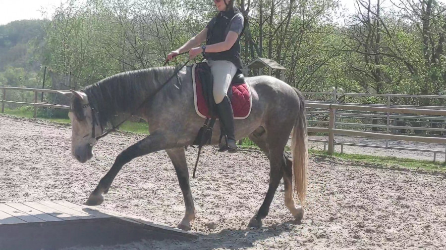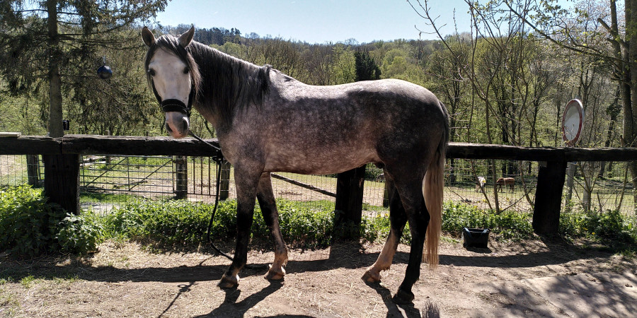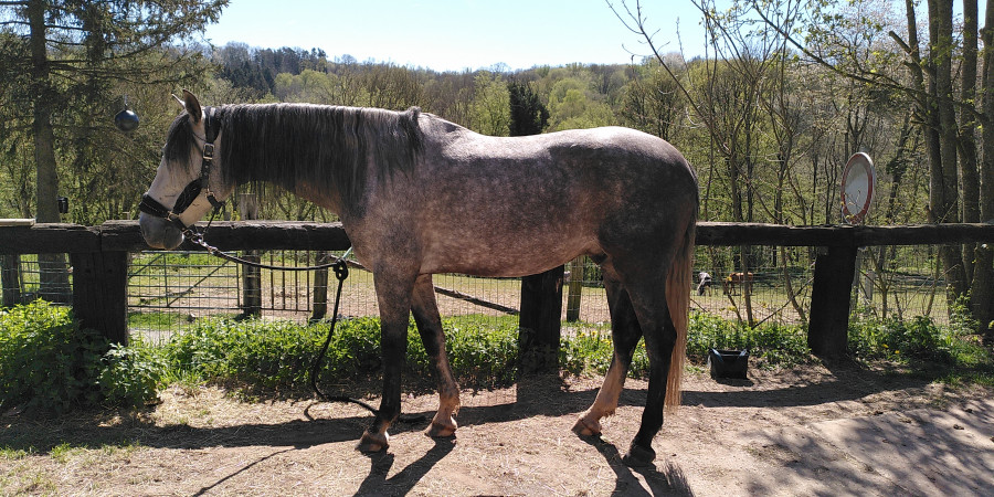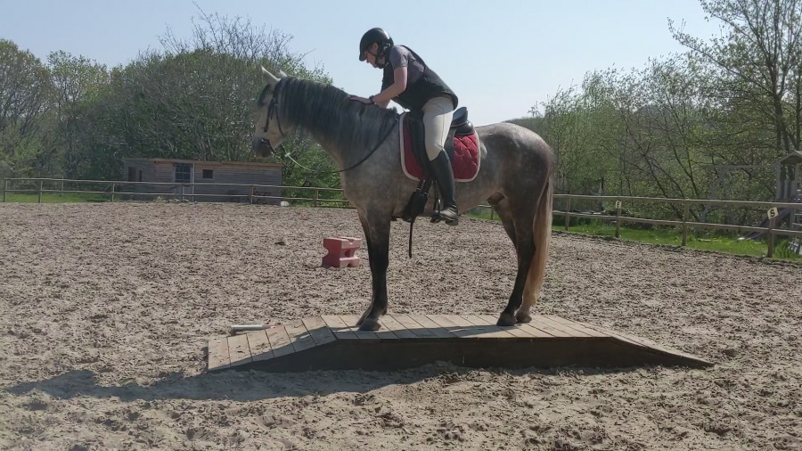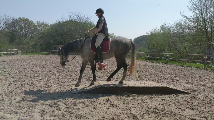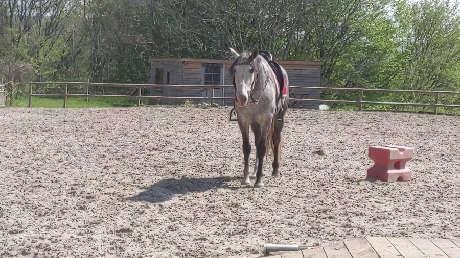 Décidé, planifié, tout organisé pour : on retourne monter en carrière ! Pastor était plutôt zen en remontant du pré, il faut dire qu'il faisait chaud, ça me semblait être un bon jour. J'ai attrapé la pause midi pendant la journée de cours particuliers. Séance d'environ 45mn, le plan c'était une grosse détente et surtout tâter le terrain dehors. Comme d'hab, pli, contre-pli, serpentines et huit de chiffre... Il était un brin regardant le long du bois mais plutôt concentré à son affaire. Moi contente, rien demandé de plus, retour au pré et dodo.