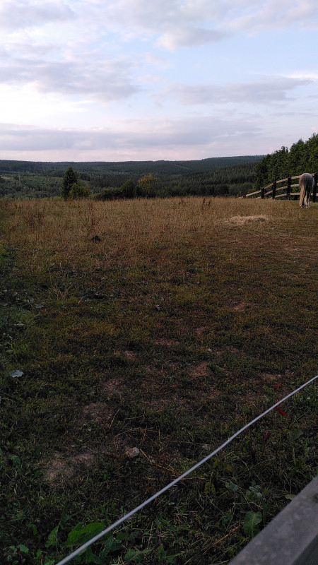 Installation en pré individuel pour la nuit, je suis impressionnée à quel point il était zen. Assez curieux de son environnement mais pas stressé, il a mis le nez dans l'herbe directement et voilà. Je l'ai pas vu aller jusqu'au bout du pré, ni trotter, ni hénnir. Il avait l'air bien, le regard doux et il a été content de remuer son tas de foin pour trouver les carottes que j'y avais planqué