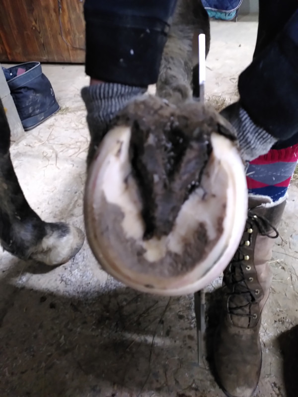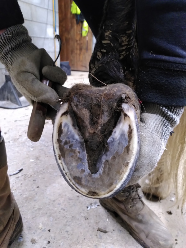 Mercredi: parage, on était à peine à 6 semaines et y avait un peu de taf malgré mes entretiens. Ses pieds restent plutôt beau malgré le box et l'équilibre latéral ainsi que la position des talons s'est vraiment stabilisée. Je suis contente ! On est même en train de venir à bout des crena (espèce de "trous" qui se forment sur la sole en face de la fourchette, au niveau de la ligne blanche). Vraiment top cette pareuse ! Après ça petite marche dans le manège, il a été plutôt calme, on a pu aller partout.