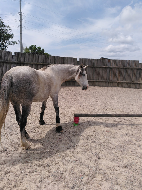 Je suis donc depuis un peu plus de 3 mois propriétaire de Pastor de Vara, hongre Pure Race Espagnole de 6 ans, né en Espagne et importé en Belgique en 2020. Avec sa gigantesque crinière et son regard enchanteur, j'ai pensé pendant des mois que c'était un cheval à problème ou avec un vice caché qui attendait d'être refourgué à une gamine... Ma mère continue de dire que c'était le destin, et qu'il fallait juste qu'on se rencontre. Je suis absolument raide dingue de ce cheval, outre le trouver superbe, il s'est révélé avoir une personnalité et un mental en or brut.