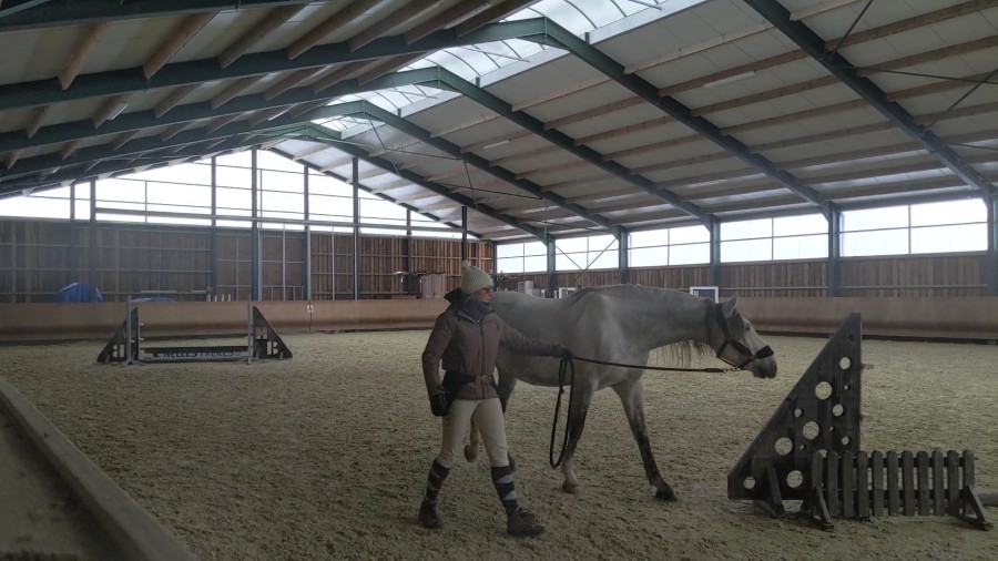 Ce weekend j'ai fait deux séances en liberté sur des barres. La première sur une ligne au centre du manège qui s'est terminée sur un petit croisillon. Dimanche j'ai complexifié avec deux lignes (une sur chaque longueur), j'ai bien aimé parce que ça permet de travailler un peu aux deux mains sans demi tours secs et d'avoir deux types d'exercices sous la main. J'ai été surprise car du côté "pas peur" il a été moins volontaire que du côté "peur", donc ça a fini avec un obstacle de ce côté là versus des barres au sol de l'autre. Il ne montrait pas de signes de stress particuliers, à croire qu'il commence à apprécier sauter ?? On a fini sur un vertical à peut être 50cm, il commence à déclencher des sauts sans se mettre dans tous ses états émotionnellement après. Très contente de la séance