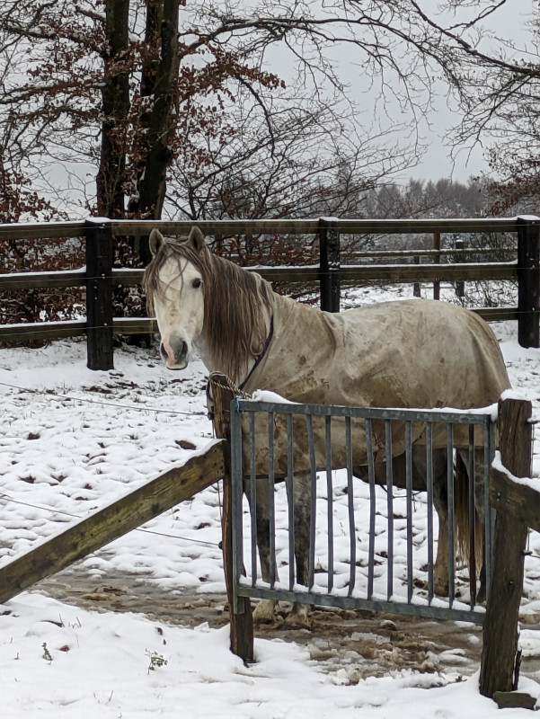 Niveau mode de vie, il fait toujours partie des irréductibles qui vivent au pré, mais je l'ai couvert parce qu'il a ce qui ressemble à un début de dermatophilose sur le dos. Probablement en raison de mes absences et du manque de pansage pour sécher tout ça. J'ai aussi eu une nouvelle ration calculée par S. Peyrille, basée sur du St Hyppolyt, j'espère qu'il acceptera de manger ça tout l'hiver. Affaire à suivre !