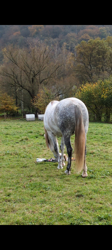 earphoria95 Il est stable niveau poids, il a bien perdu cet été grâce au panier. Je ne lui ai pas mis à l'arrivée dans la nouvelle pension, le temps qu'il découvre. Quand j'ai voulu lui remettre il s'est vilainement fait attaquer par l'autre hongre donc j'ai interrompu la tentative. Mais bon, déjà il n'a pas repris avec l'herbe riche d'automne, et vilaine humaine que je suis je compte le laisser avoir un peu froid cet hiver histoire qu'il utilise du gras ahaha. Mon but c'est qu'il repasse sous 190 à la sangle et vers 215 au ventre.