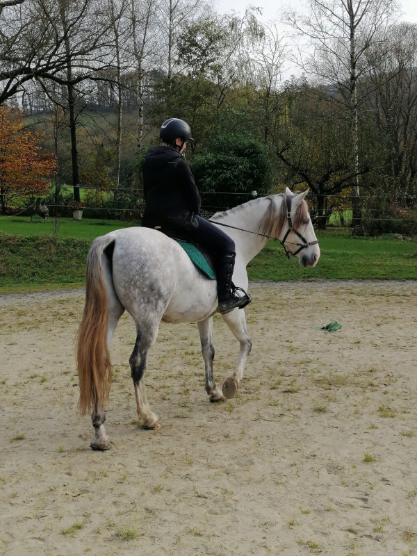 Sinon re- en selle ! J'ai monté plus ces 6 dernières semaines que ces 12 derniers mois. Encore une mini séance avec des tapis, un peu de latéral, un peu de trot, brave poney. J'ai repris la lecture du livre "Monter à cheval uniquement avec l'assiette" de Brigitte Kaluza (malheureusement disponible qu'en allemand et en anglais) qui explique la physique et la biomécanique sur comment ça fonctionne en vrai. C'est hyper intéressant et ça me chauffe à être hyper exigeante avec moi même pour pas bidouiller avec les mains (les pieds c'est déjà facile vu les transitions à la voix). Très intéressant l'effet sur Pastor qui est vraiment réceptif à l'assiette et quand on était bien de concert j'ai eu l'impression sur quelques foulées qu'il avait mille fois plus de travail que ce qu'il n'a vraiment. Objectif cet hiver : en selle 2x par semaine
