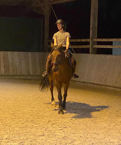 J'arrive à l'écurie à 13h30 pour préparer Lya, une nouvelle jument de club à la robe alezane brûlée sublime