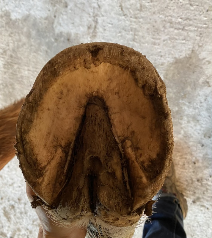 Je l'ai déferré (et pas paré encore), après deux ferrures, maintenant que le troupeau est stable et les sols mous