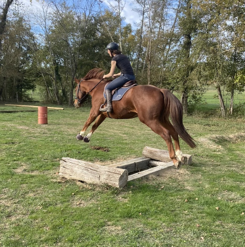 La conscience du corps, ca vient. Hier je l'ai mis au paddock à brouter après la séance. A un moment il a explosé en l'air, il monte comme un bouchon de champagne en faisant le dos rond, fait un 180 et lance les pieds. Je ne sais pas quelle hauteur il atteint, j'aurai du filmer. Je vais jamais tenir dessus s'il saute comme ça