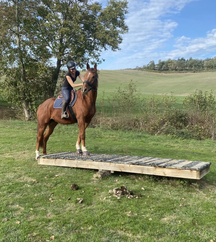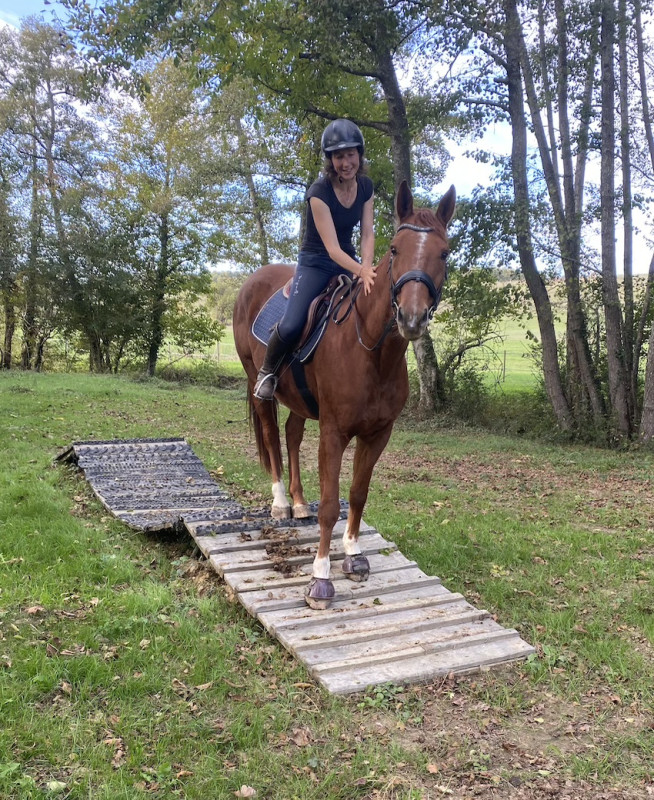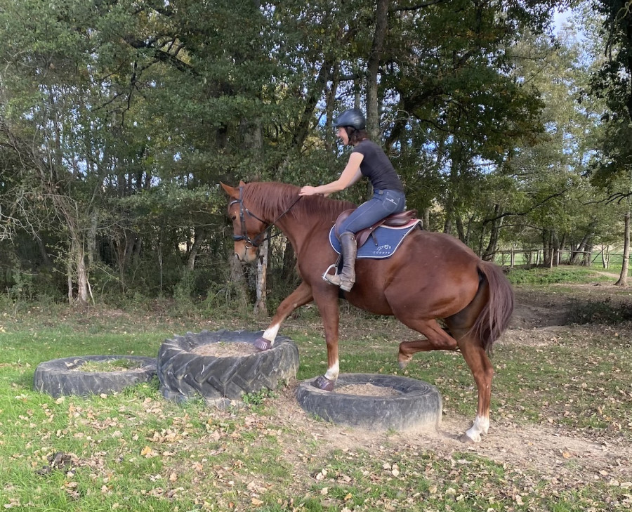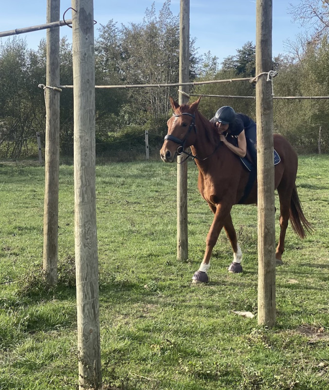 Quand à l'évolution rapide, je t'avoue être un peu en guerre contre ça. Ce sont des bébés. il a beaucoup grandi depuis un an (il est maintenant plus grand que moi, alors que quand je l'ai acheté son garrot arrivait à mon nez), il ne gère pas son corps (par moment on "perd" le départ au galop par exemple!), il m'est impossible de lui en demander plus qu'il ne peux donner. Cela se voit, par moment il est incapable de garder son équilibre au trot en longe. Alors avec un cavalier??