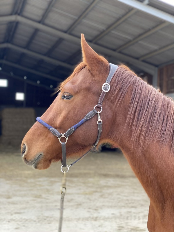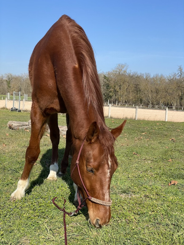 Dimanche et hier j'ai réintroduit un peu de trot et de galop (qu'il fait dans son paddock en jouant avec le voisin) + les bases de gestion des pieds. Bon, c'est surtout histoire de le bouger un peu car il est seul au paddock et il ne bouge pas trop.