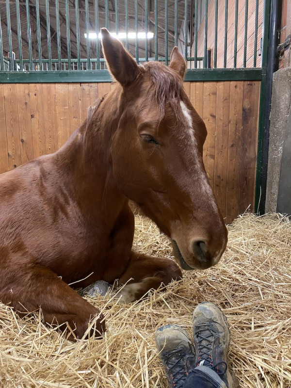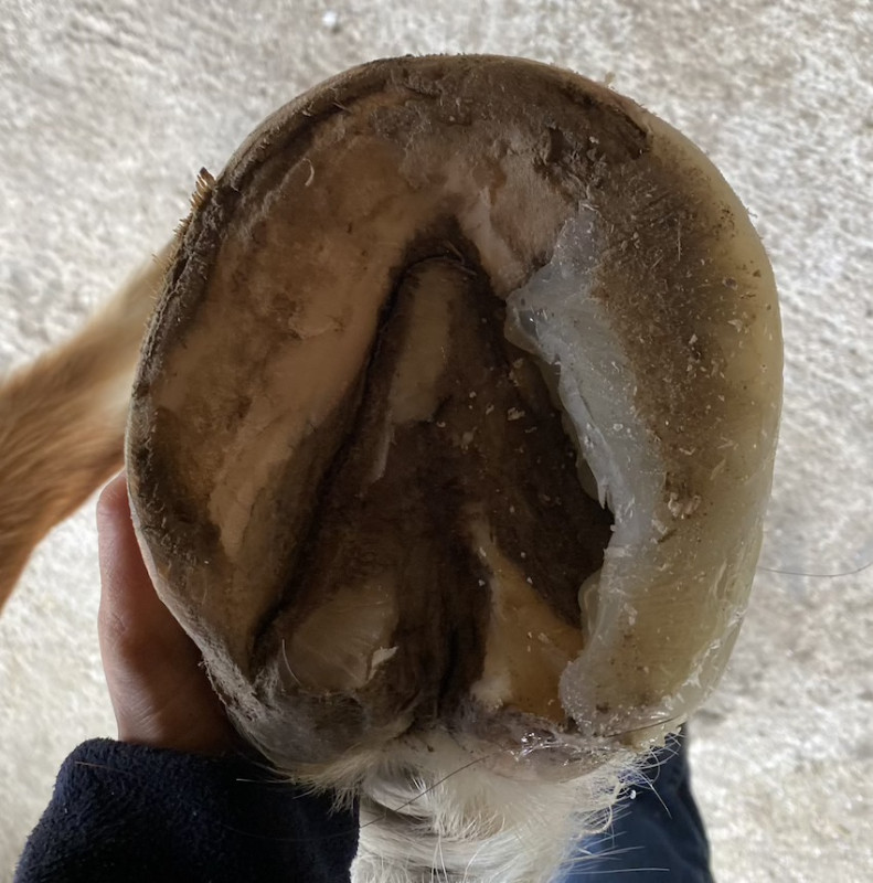 Il a eu un parage basé sur les radios des pieds, gros nettoyage et grosse remise d'aplomb - forcément après deux pertes de soles et quasiment 3 semaine sans avoir accès à son antérieur droit, y'avait des trucs à rectifier.