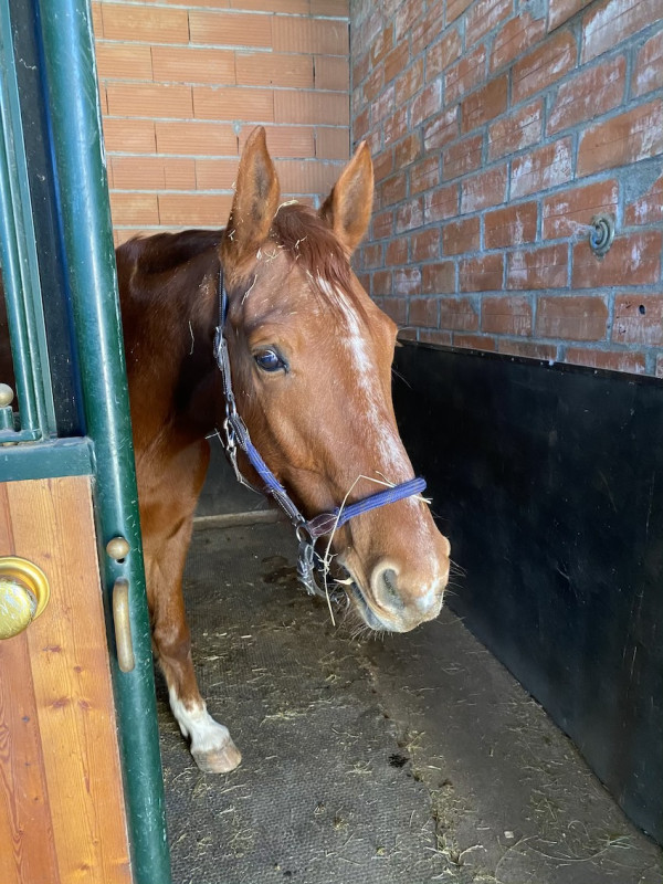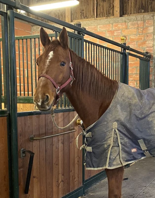 Jeudi matin, 6h, je débarque à l'écurie, il est débout, il a le tête dans le cul mais il est vivant. il a fait un crottin dans la nuit. Pas de signes montrant qu'il aurait été agité (box bon retourné)