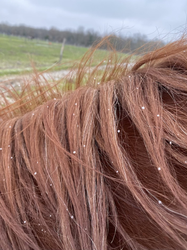 Il a des petits ulceres en sortie d'estomac donc cela pourrait expliquer que la vidange soit "ralentie" - on voit qq gastérophiles mais pas en grappe comme j'avais pu le voir sur mon premier cheval.