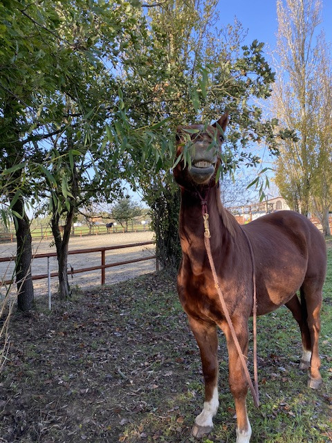 - vu par hasard dans un club alors que je ne cherchais pas encore officiellement: 5ans SF débourré, alezan (argh) mis au travail, rétif, changé de pro, rétif, changé de pro, encore plus rétif. Actuellement remis au travail avec une chouette monitrice et avec des résultats fantastiques. Gros passif à mon gout (cheval non travaillé à main droite pendant X mois car rétif, j'avoue ca me pose question sur certains "PRO" en équitation), mais belle morphologie, une bouille à tomber et un caractère ultra-intéressant. Arrivé trop tôt dans ma recherche après l’euthanasie de Shining, il n’a pas eu sa chance…