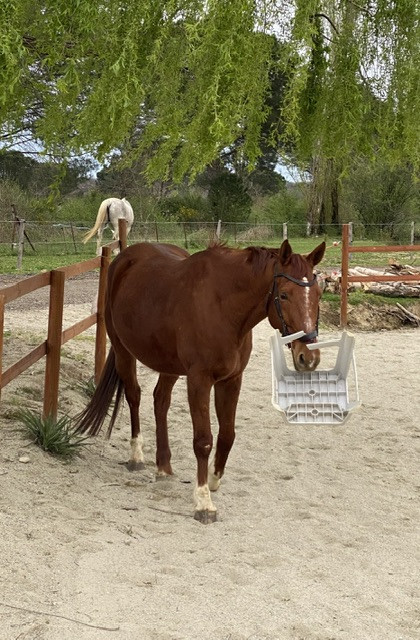 J'ai vraiment arreté de croire qu'avancer résoudrait mes problemes avec ce cheval ;-) - sinon me faire peur avec tellement il est rigide et en déséquilibre si je le fait avancer au delà de ces possibilités dans la décontraction. Mon but est vraiment de l'avoir fin aux aides pour progresser dans mon équitation, pas d'aller vite dans des attendus de compétition. Il met sa tête où il veut pour l'instant, pour avoir le moins de compensations possibles!