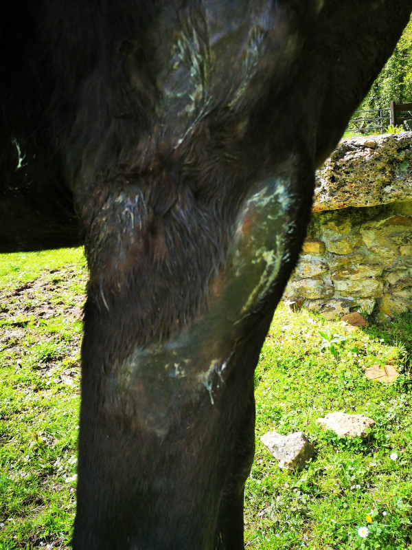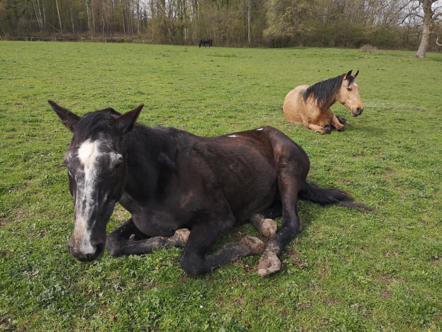 marj1981 ben écoute , il à eu pas mal de traces de dents au début, mais là ça va. Il est toujours avec un autre hongre , il est avec les autres mais pas collé à eux. Moon à toujours été un cheval dominé , là par contre avec son copain c'est lui qui le domine.
