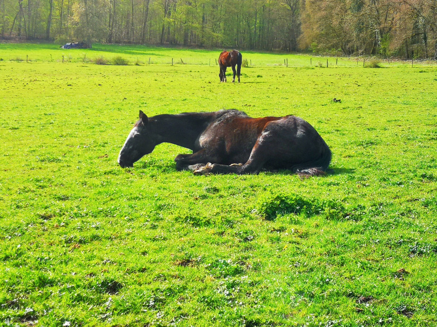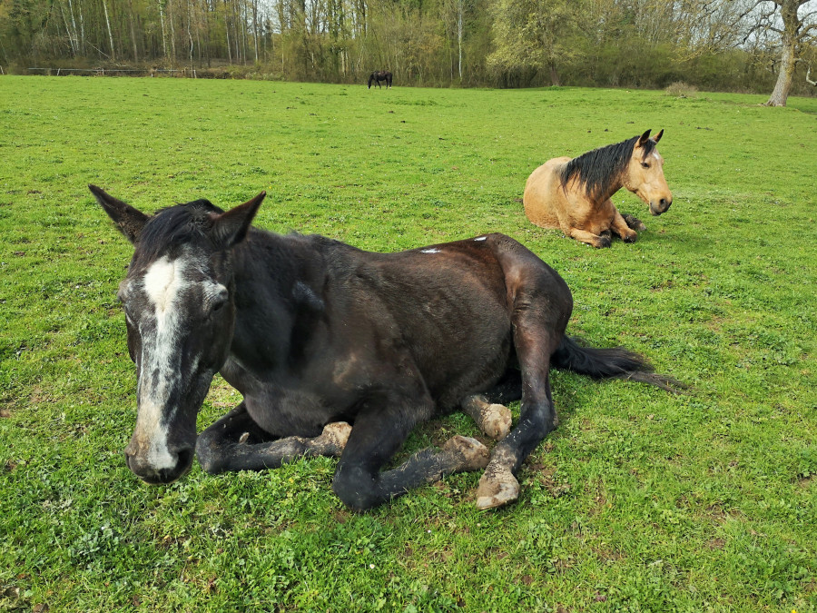 L'alimentation principale est bien l'herbe , Ils ont beaucoup de ruisseaux dans la pâture du coup elle reste toujours verte (je sais pas forcément nutritive ^^ ) mais par rapport au paddock de boue où ils étaient avant ça fait plus plaisir.