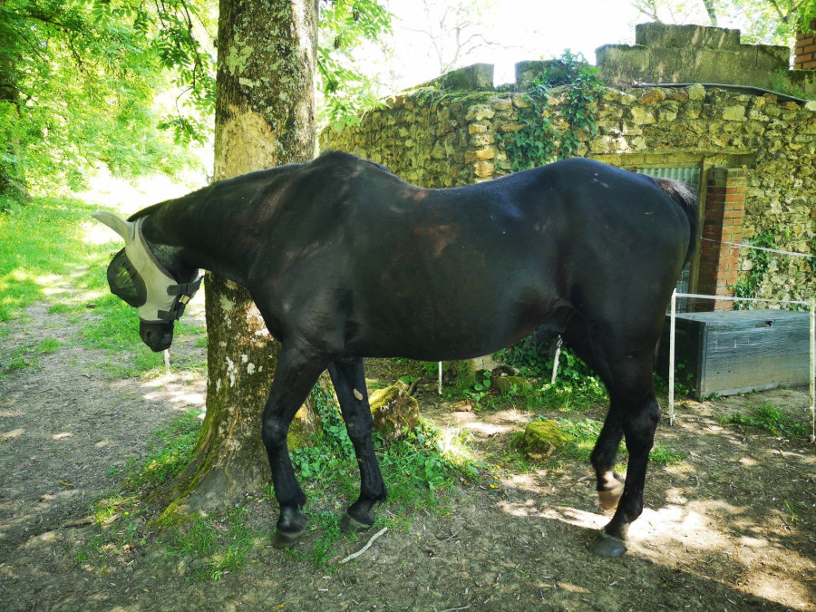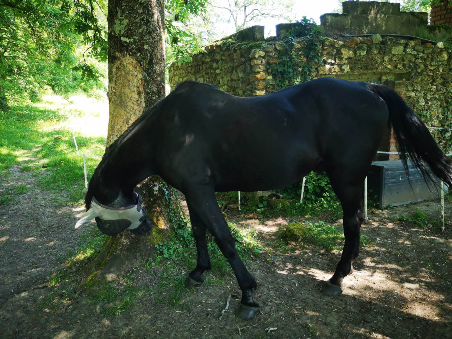 J'ai donc retirer les fers avant mais obligé de garder ses fers arrière à cause de son arthrose au jarret.